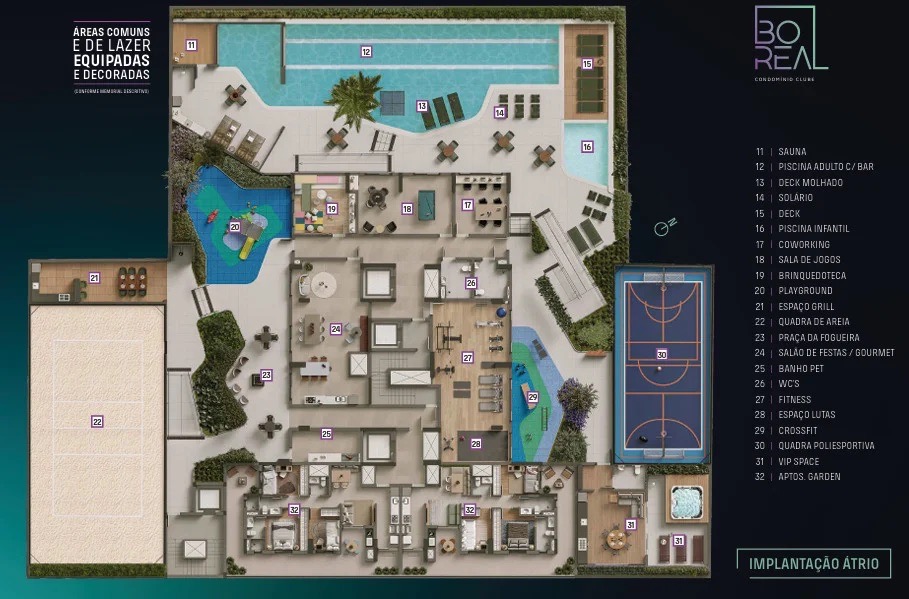 Explore o Boreal Condomínio Clube por dentro e descubra ambientes modernos, sofisticados e acolhedores. Cada área foi planejada para que o conforto e o design se encontrem em perfeita sintonia, refletindo o estilo de vida que você merece.