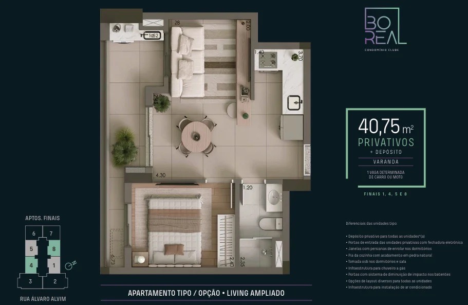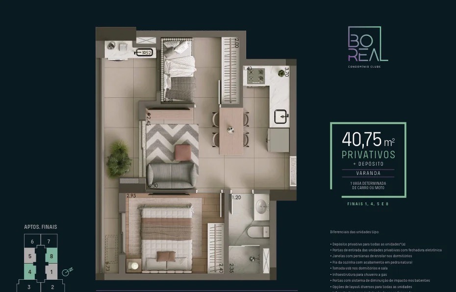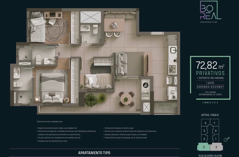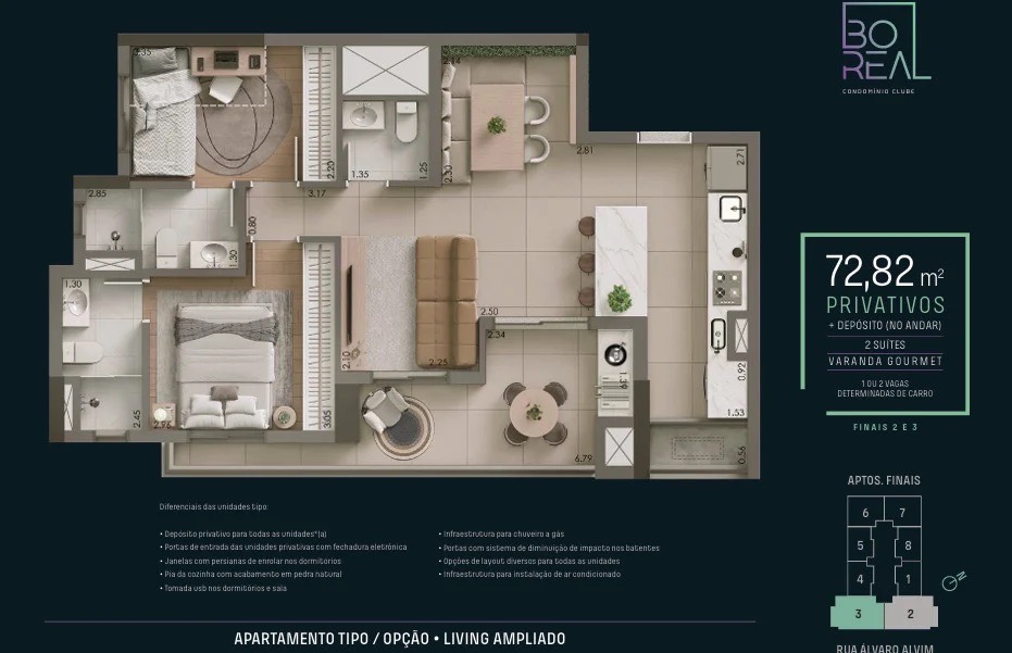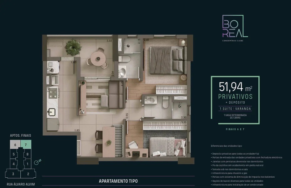 Cada detalhe, da planta inteligente ao depósito privativo, foi idealizado para proporcionar bem-estar, segurança e funcionalidade. Aqui, você não apenas encontra um apartamento, mas um lar que evolui com você.