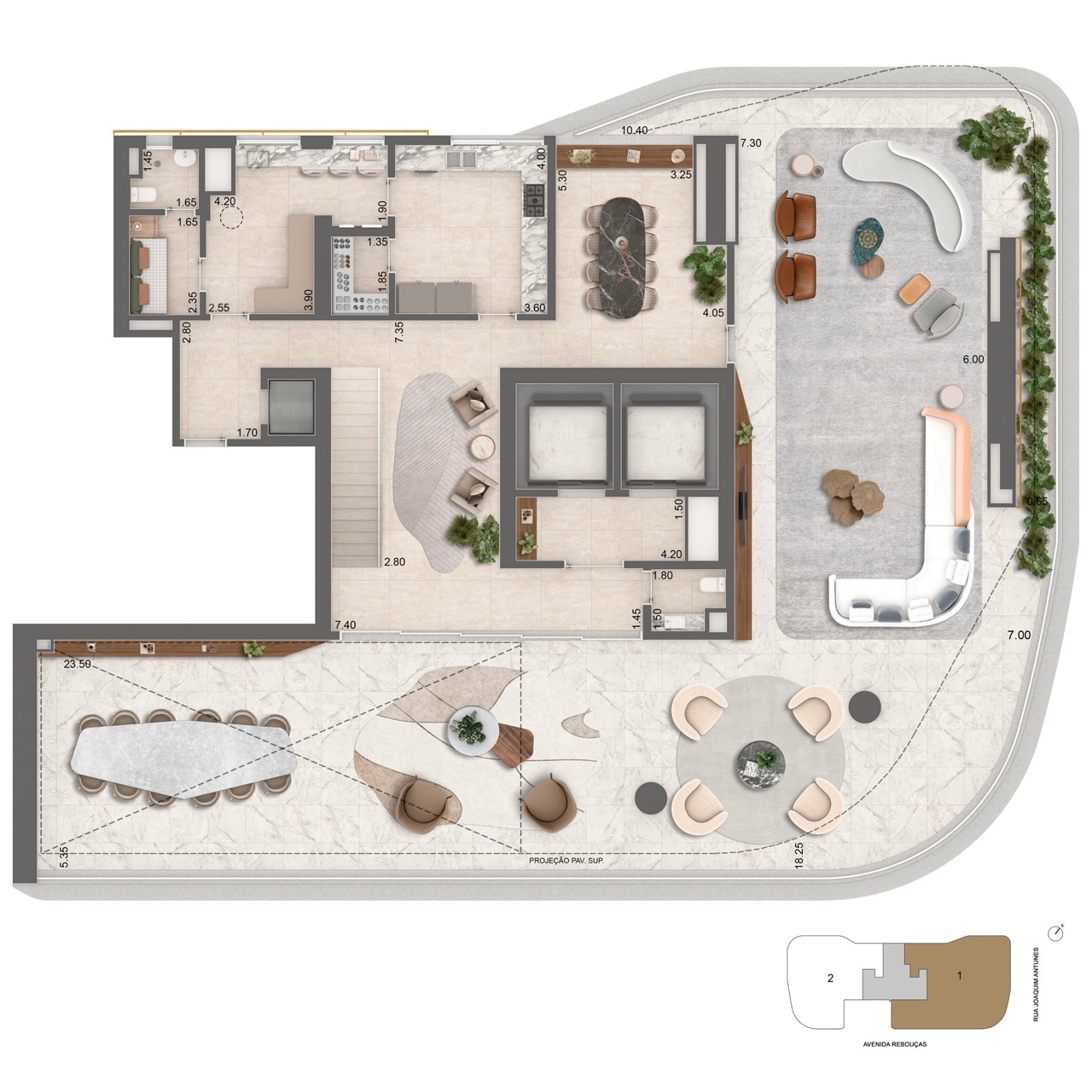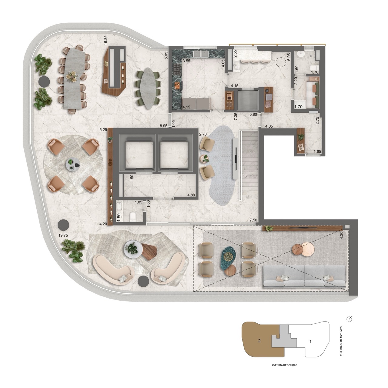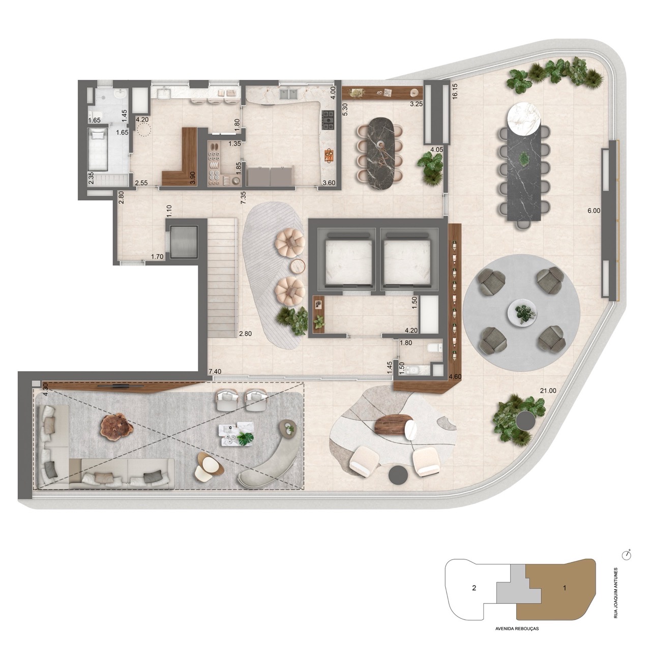 Localizado no ponto mais alto da Av. Rebouças, entre Pinheiros e Jardins, o empreendimento oferece acesso rápido às melhores opções de gastronomia, lazer e mobilidade urbana.