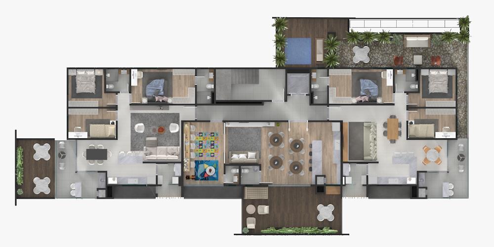 Layouts variados em diferentes andares, com plantas que aproveitam cada metro quadrado de forma funcional e elegante.