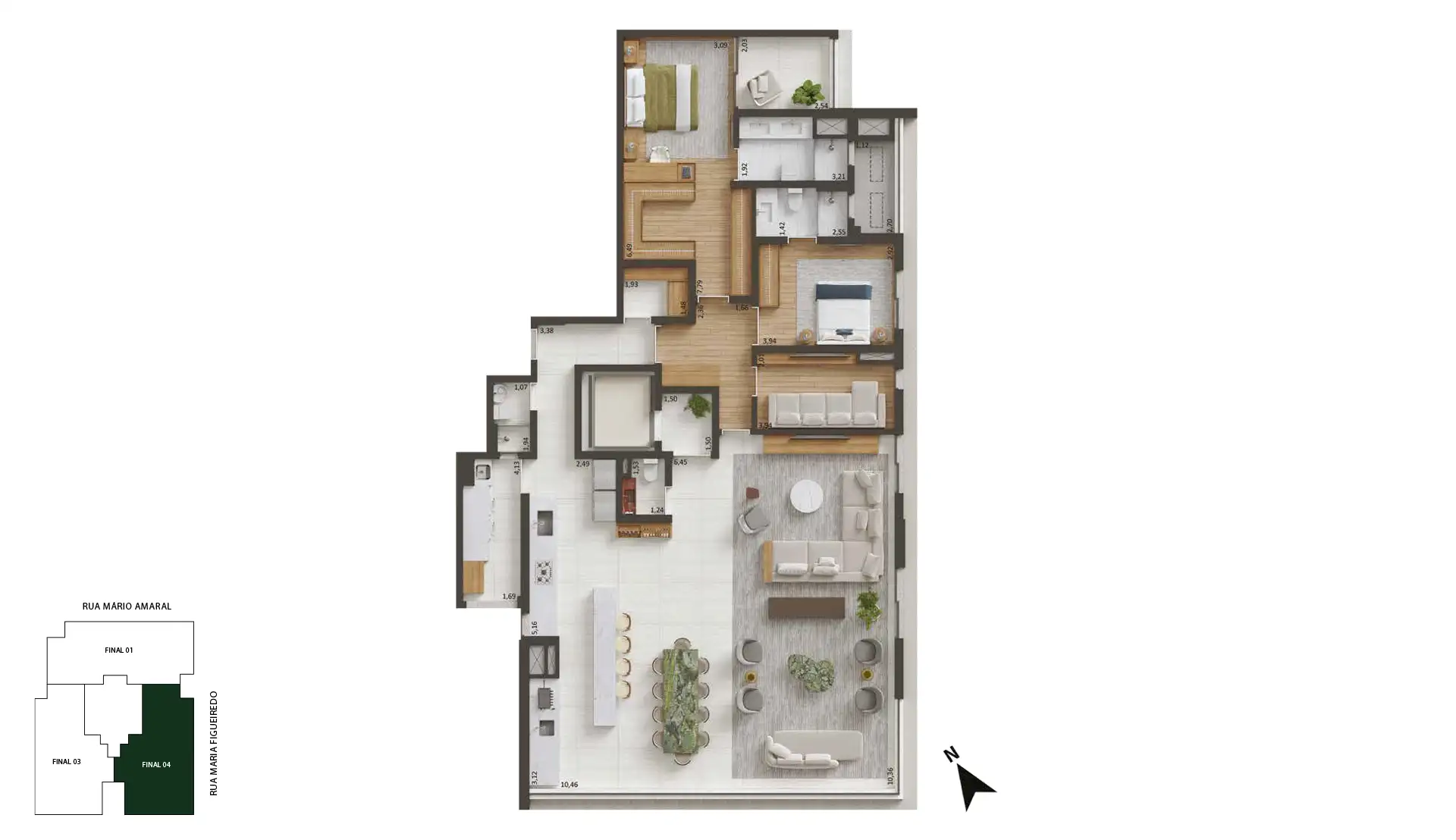 161 m² – 3 suítes | 2 vagas | depósito privativo