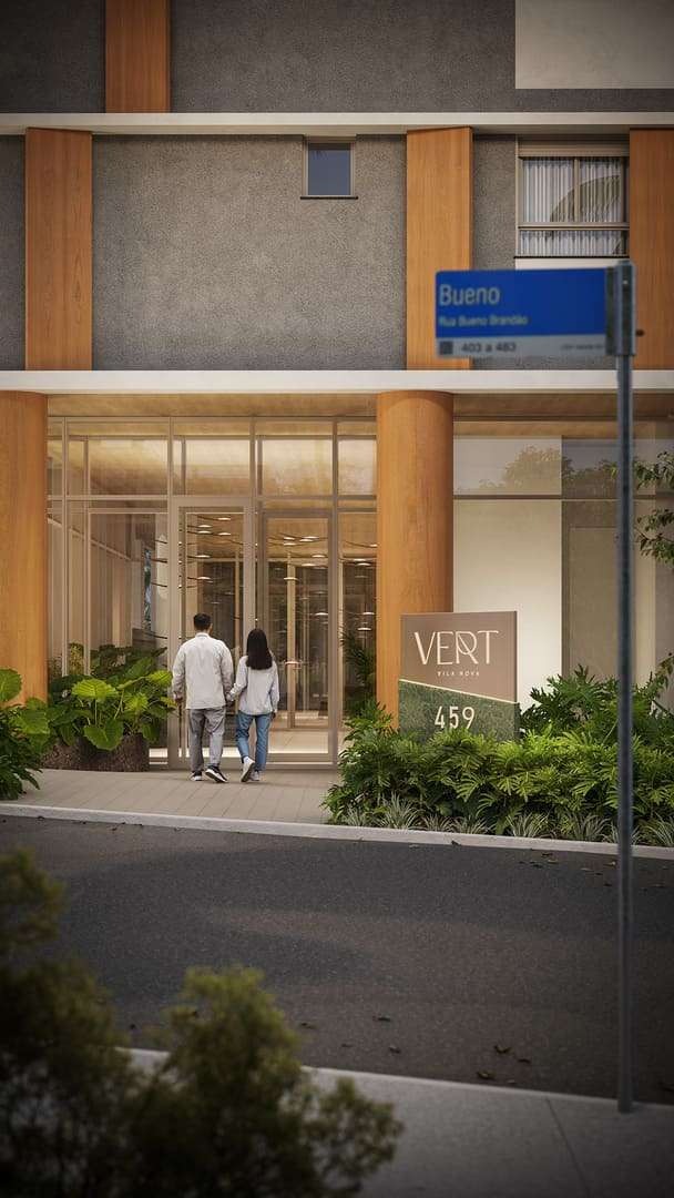 O VERT Vila Nova nasce em plena Rua Bueno Brandão, com assinatura premium, paisagismo assinado, projeto arquitetônico de referência.
